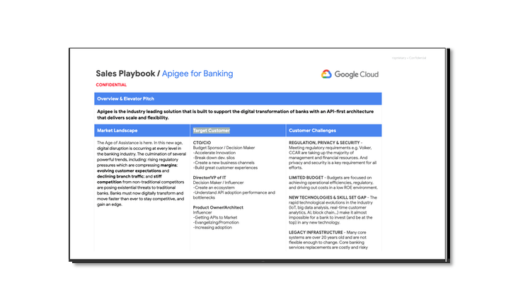 High level Apigee industry specific sales plays and guides to give partner account executives ability to joint sell the financial solution.