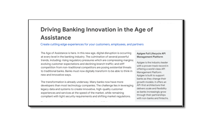 The Age of Assistance is here. In this new age, digital disruption is occurring at every level in the banking industry. The culmination of several powerful trends, including: rising regulatory pressures which are compressing margins; evolving customer expectations and declining branch traffic; and stiff competition from non-traditional competitors are posing existential threats to traditional banks. Banks must now digitally transform to be able to think in new and innovative ways.