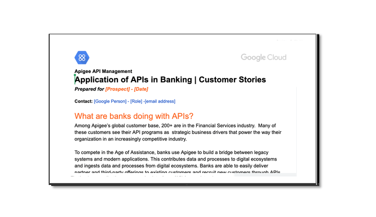 Use these assets to relate the industry business value of APIs and Apigee to a diverse set of prospects that span business and IT